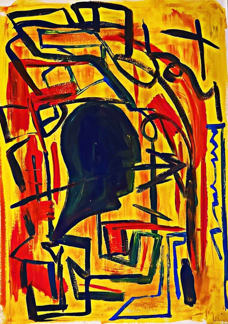 On the canvas, the face of a person in profile is like a statue in the eternal moment of inner defeat, an arrow of hidden destiny pierces his gaze, leaving in the soul an imprint of harmony between painful beauty and unknown mysteries, like an arrow stuck in the heart of life.